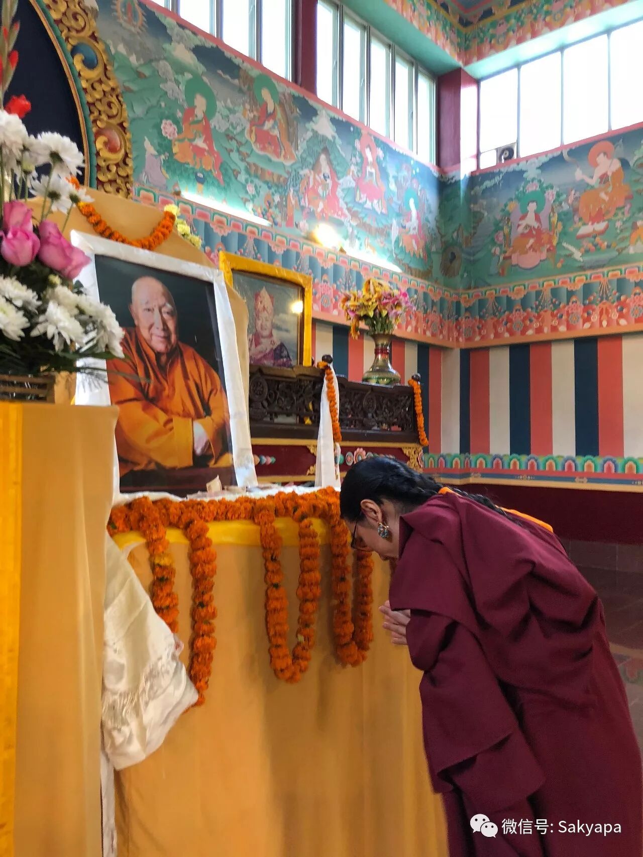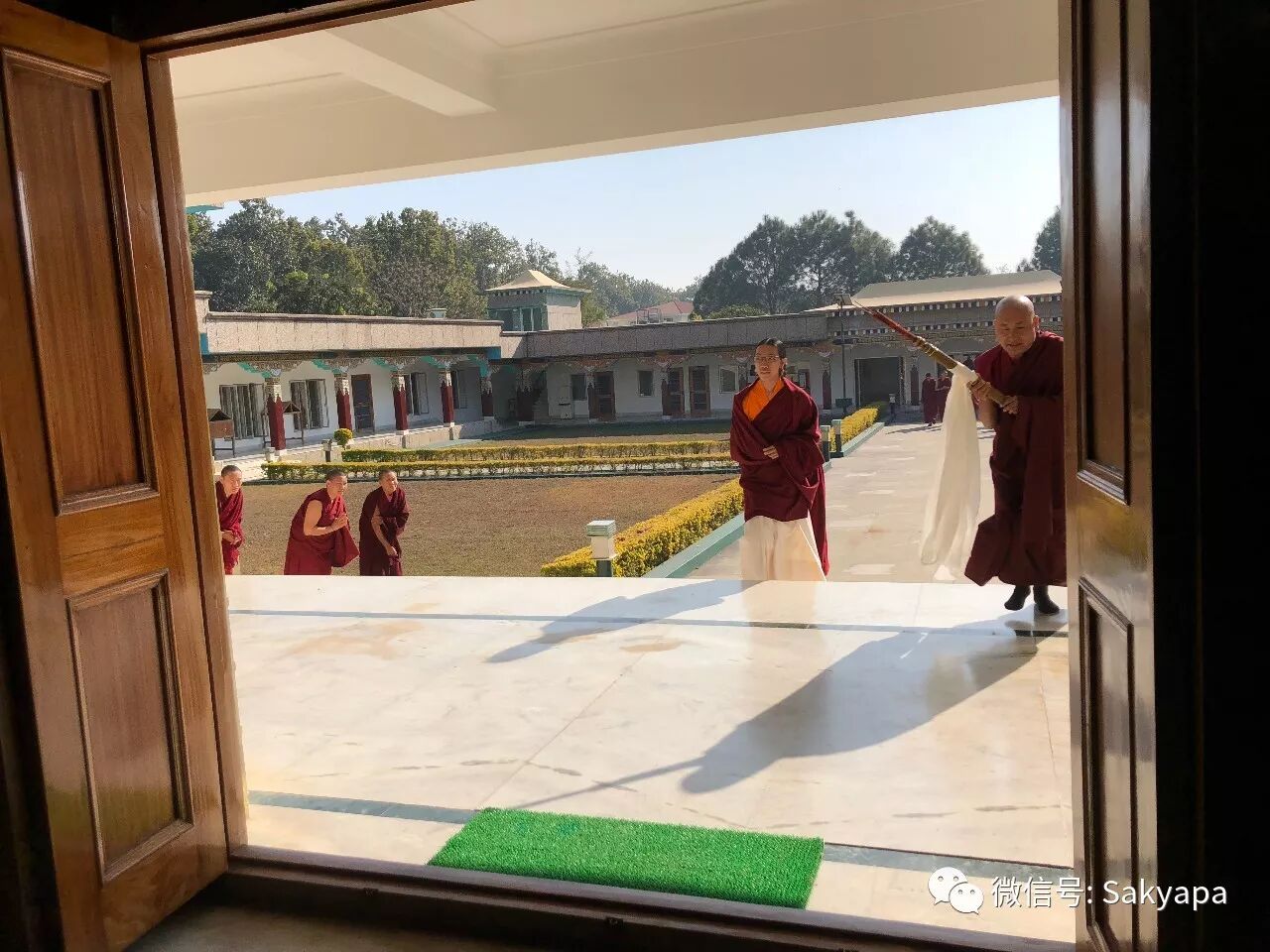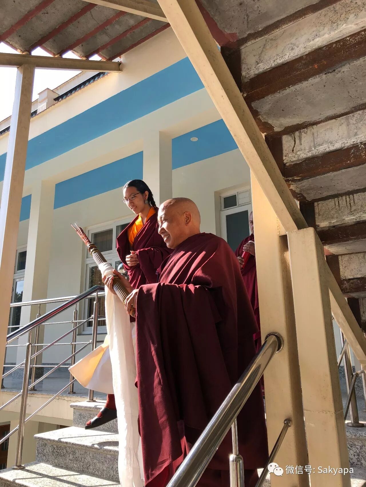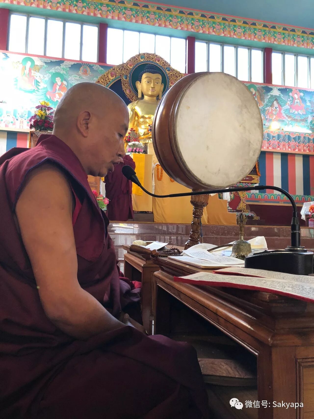 2018年1月9日法王子阿桑噶仁波切在印度萨迦尼师佛学院参加纪念堪千阿贝仁波切的上师瑜伽法会。