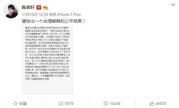 这么多的角色,陈若轩基本上都高产又高质地完成了。陈若轩用心锤炼琢磨的,不仅是角色和戏,更重要的是对演戏严肃的态度。就连在这个人人都配音的时代,陈若轩还在坚持能用原声就用原声,甚至一言不合就怼了片方。