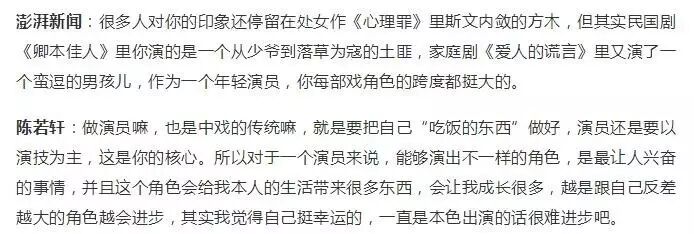 90后的演艺世代,谁说颜值和演技不能兼得呢?踏实、努力、敢拼的人总会慢慢崭露头角。如今会哭、会演、会讲词、还会耐心揣摩角色又有颜值的陈若轩,已经是一个合格的体验派演员了,从“潜力”变成“实力”也许真的指日可待了。