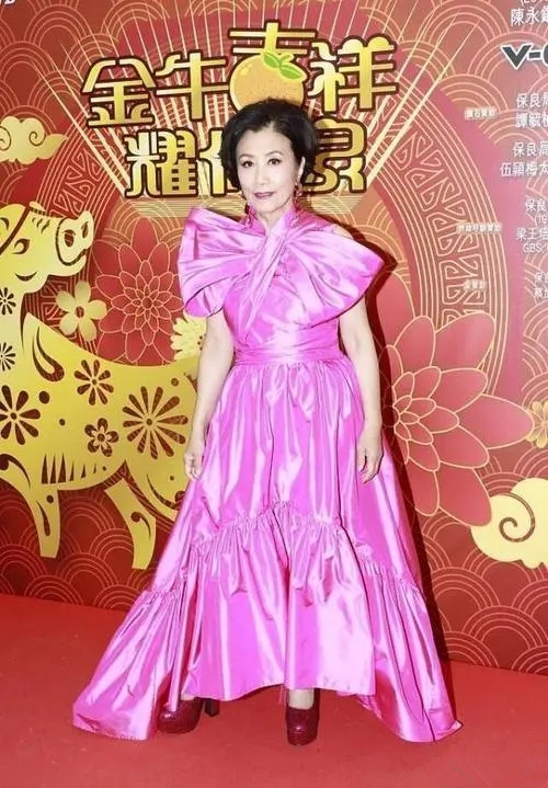 这件粉色的裙子也一样,非常规的粉色群,而是具有极其的设计感!一个大蝴蝶结在胸口,非常的闪眼!看来汪明荃的设计师,还真的是很牛逼的一个人呢!毕竟给汪明荃这样的大牌设计衣服,实力真的是很强!