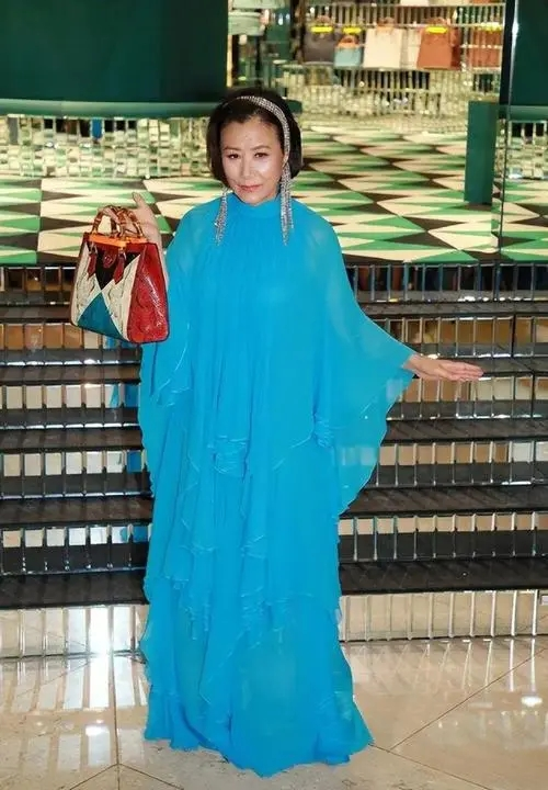 要知道汪明荃可是个时尚的能手呢!任何场合的衣服,总是能让人眼前一亮,有个性又特别,非常的出众!比如这件蓝色的纱裙,远看以为是一件宽松的款式而已,其实近看,有很多层叠的设计,非常的富有层次感!