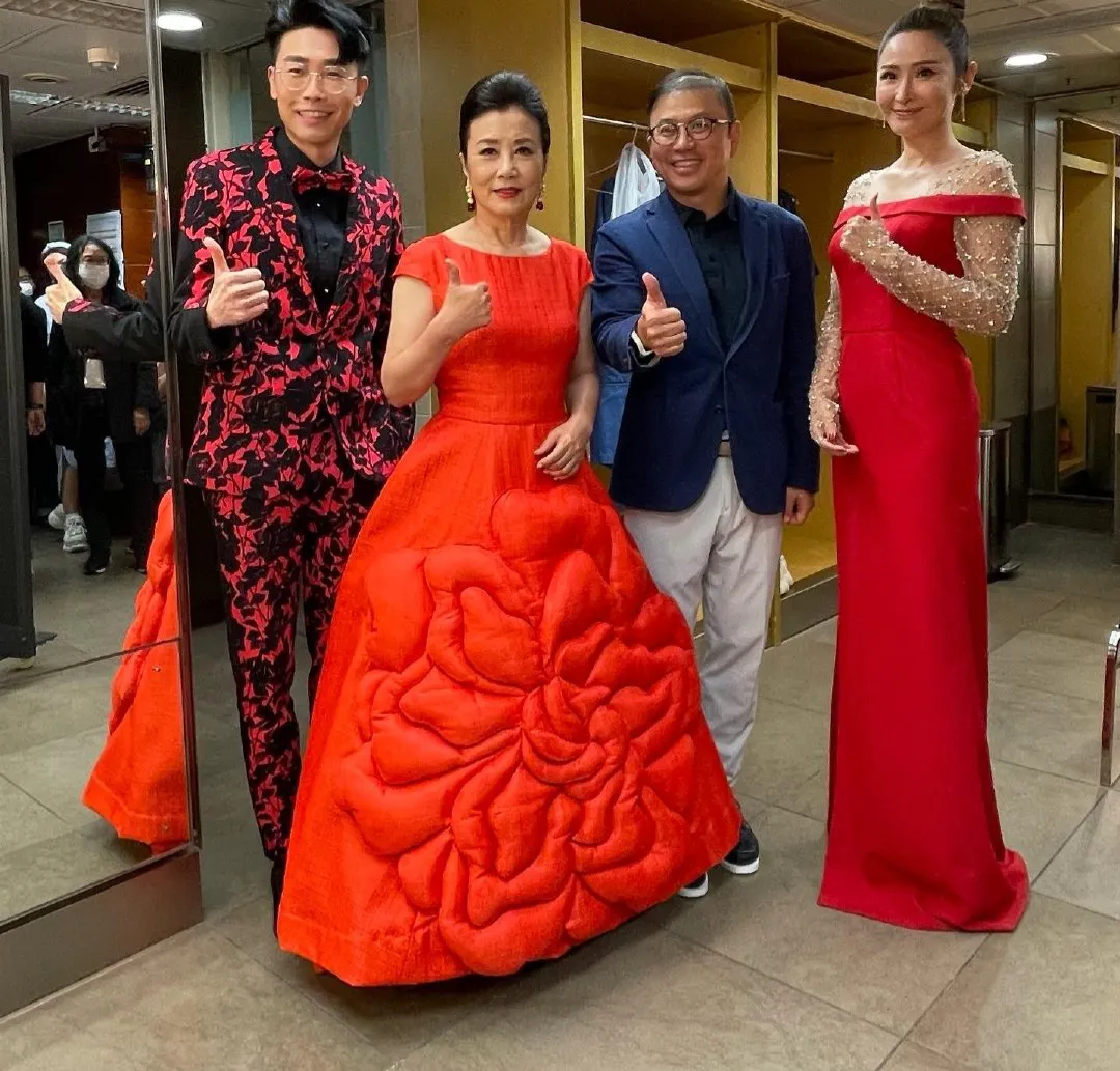 比如这张合照,都是红色的裙子,汪明荃穿了一件典型的晚礼服,裙摆上印有一朵紫金花,非常的有深意,也证明了汪明荃的一颗爱国之心!而陈贝尔穿了一件抹胸的长裙,高挑的身材,也让她能在人群中让人多看几眼!只可惜和汪明荃在一起,陈贝尔虽然年龄上和身高上都有优势,但是还是被汪明荃给比下去了!