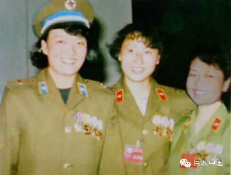 1987年全国英模代表大会期间,英模代表邱晨(左)、杨锡兰(中)、彭丽媛(右)在一起。