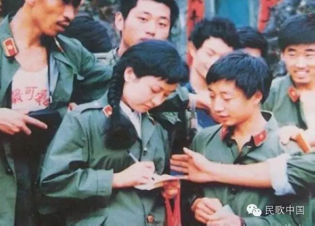 彭丽媛在老山前线为作战官兵献唱。图片来源:环球网。