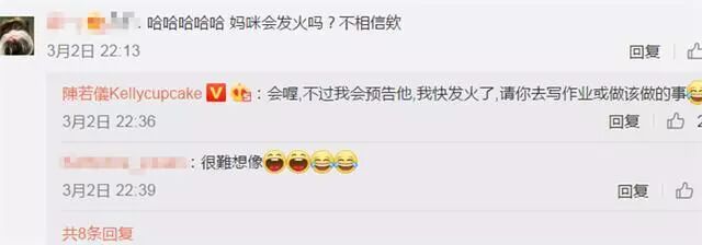 陈若仪平时给大家的印象是很温柔的,粉丝们无法想象这么温柔的女人还会发火,纷纷评论:“哈哈哈哈哈,妈咪会发火吗?不相信欸。”“妈咪那么温柔会发火嘛。”“哈哈!有才,原来妈咪发火起来在kimi的世界是这样。”“我女儿说我生气发火时像喷火龙,这届孩子都有想法。”“Kimi哥哥好可爱,感觉若仪姐是不会生气的,因为样子本来就长得不像会生气的美人儿。”