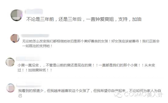 郑爽到底怎么了,快帮她使出一记还我漂漂拳! 内地女星 2016-04-09 19:59:23 153 创作不易,用心坚持,欢迎请BaGua喝几杯爱心咖啡!打赏并支持本文 打赏并删除本文 也不知道是从什么时候开始,越来越多的人对美开始有着越来越高的要求,大家不是以“白净”为美,而是以恨不得素颜晃瞎人眼的“特别白”为美,不是以“好看”为美,而是以“瘦”为美,不是以“标致”为美,而是以“脸小、眼大、鼻梁高”为美,而娱乐圈的各路明星为了使自己的事业蒸蒸日上,自然也少不了“过度追求完美”的例子。就拿我们的爽妹子来说吧,无论是以前还是现在,小编一直没觉得郑爽哪点不好,相反,身在混杂的贵圈还能保持一颗纯真耿直的心,实在是难能可贵。不过,让小编抓耳挠腮的是:为什么总是有那么多的人去诋毁她?这个从小就才艺双全的标准90后少女,仅仅在16岁时就同时被北影、上戏、中戏同时录取,敢问大家16岁的时候在干嘛?因为一部《一起来看流星雨》使得她获得第25届中国电视金鹰节电视剧最佳女演员提名,而大家也因为小爽甜美可爱的外表和纯真的性格深深的喜爱着她。随后又在2012年,凭借个人首部电影《画壁》获得香港电影导演协会年度新演员金奖和第31届香港电影金像奖最佳新人提名。2014年又因《古剑奇谭》获得第13届电视华鼎奖全国观众最喜欢的影视演员。但终究是“人红是非多”,本以为《古剑奇谭》和《相爱穿梭千年》把小爽的演艺生涯推到了一个新的高潮,但却因为容貌上的一些变化,招来了很多负面的影响。在众多舆论的作用下,小爽还是勇敢做自己,重新回归校园,出演《微微一笑很倾城》女主角贝微微。在今年,小爽还和爸爸加入了《旋风孝子》。但话说起《旋风孝子》,其实在还未开播之前,小爽的负面影响就一直从四面八方袭击着她, “分手传闻”、“暴瘦”等一些字眼频频出现在热搜榜。看到小爽暴瘦后的模样,小编真的想问问那些一直批判小爽的人们:这样的妙龄少女,不世俗也不圆滑自我、一不做作二不耍手段,始终凭借自己的努力积极向上,为什么还要一直攻击她?虽然比起现在瘦骨嶙峋的小爽,小编比较偏爱于她之前的清纯可爱,但我们不能否认她现在也很美的事实。也是《旋风孝子》这部真人秀节目,让小编对小爽的怜惜一路飙升。而在节目中她也曾坦言,自己的压力太大,害怕观众不喜欢自己而不敢吃太多。(泪流满面的小编真的很心疼这个少女)而不论是以前还是现在,小爽的恋情也一直被大家围绕着,而面对着这些舆论,小编也整理了一些网友对小爽的鼓励和评价:虽然每个人的言论都是自由的,但也不应该随便去伤害一个正能量的女孩,而我们也应该给小爽一个大大的拥抱,鼓励她勇敢前行,希望她越来越好。说完了小爽,小编再来带大家看看娱乐圈中由于“过度追求美丽”而越行越远的例子。刚出道时的孙菲菲很秀丽,但由于爱美过度,不仅使自己的脸看起来僵硬无比,也老了很多岁。一直停留在我们脑海中的晴儿,气质和长相都可以称得上是美女的类型,可由于后来的极度爱美,不仅和之前的容貌相差很大,如今也是让大家脸盲症大犯。巩新亮容貌的变化实在是让小编摸不着头脑,难道小尖下巴就是标配吗?因《花木兰》而一举成名的刘雨欣本就长得不错,但却不知为什么下巴越来越“坚挺”,让这个人看起来凶了不少。大胆承认自己做过调整的优雅女神张檬,不但没觉得好看,反而感觉笑起来都那么吃力。俨然一副贵族名媛样貌的“社交皇后”薛芷伦,单身后便开始热衷于改变自己,这......小编很难想象的出单身后的她到底经历了什么。想让自己变美的心固然是每个女孩子向往的事情,但是盲目的去追求美,往往会事半功倍,底子好更应该谨慎的对待自己,更得慎重每一个变美的途径,珍惜自己的容貌才能使自己变得更美啊!猛戳阅读原文,惊喜抽奖在等你!Lancôme柔皙轻透防晒露 SPF30+/PA+++ 480元/30ml 机会就在眼前,不要错过哟! 创作不易,用心坚持,欢迎请BaGua喝几杯爱心咖啡!打赏并支持本文 打赏并删除本文 感谢您的支持鼓励,我会继续努力的!文章地址:用户邮箱:打赏金额:USDT 请输入数字点击”去打赏“,即可进行打赏支持本文章哦 郑爽 发表评论
