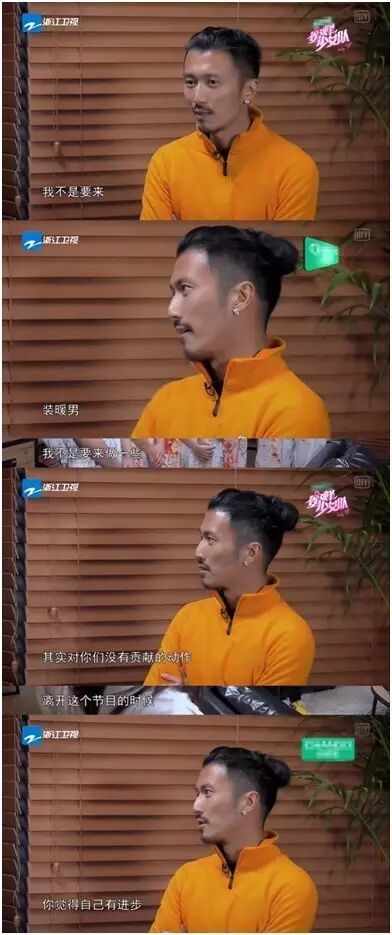 在冲锋少女队失败的时候,他自己也说过“我不要装暖男,那是对你们没有贡献的动作”。