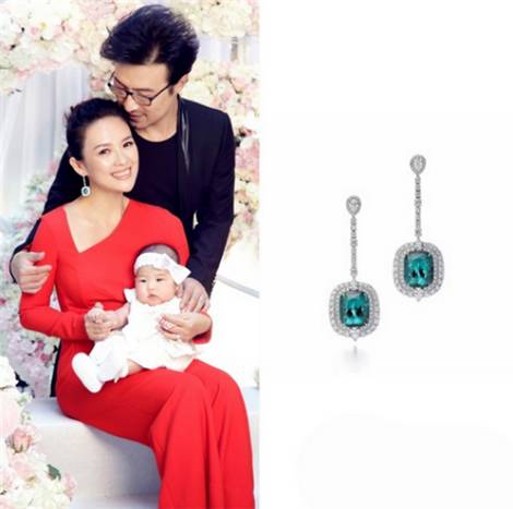 在宴席上,章女神身穿红色礼服,佩戴铂金镶嵌蓝碧玺钻石耳坠,优雅地抱着粉嫩的“小醒醒”(章子怡给女儿取的昵称)。子怡不仅身材恢复得极好,而且沐浴在母爱的光辉下,人变得更美了。