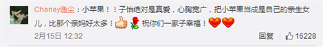 ▷ 文字版(来自网友“Cheney逸尘”,她说:“小苹果!!子怡绝对是真爱,心胸宽广,把小苹果当成是自己的亲生女儿,比那个亲妈好太多!祝你们一家子幸福!”)