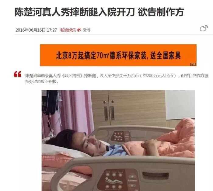 2016年,《非凡搭档》录制期间频频发生意外,陈楚河摔断腿,签约电视剧也被迫退出。