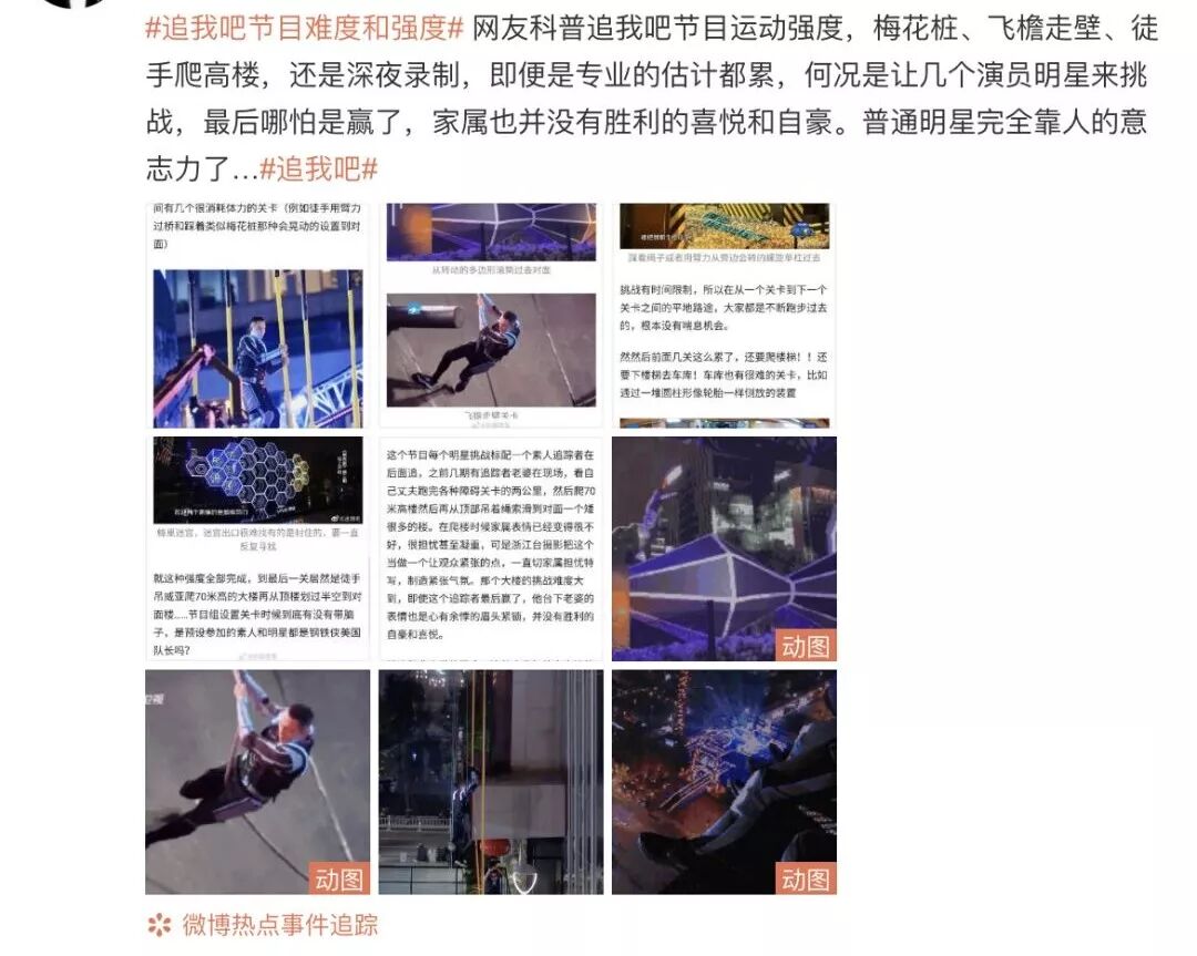 这两天成为焦点的《追我吧》节目被公众审视,其节目难度太大,嘉宾大多感到吃力不已,并多次出现不适或受伤状况。