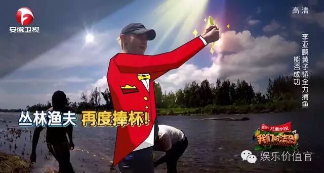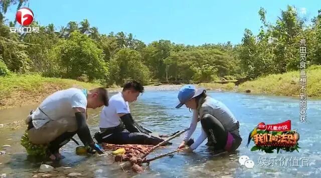 其次,当所有明星完成安营扎寨之后,开始出去找吃的。节目组发布的预告片是黄子韬和李亚鹏两人捕鱼大获成功,结果呢?实力打脸了!他们去找鱼了,也找到了,也捕捉到鱼了,鱼的大小是这样的,是鱼苗!!而预告片中的大鱼是当地人用网子捕捉到之后,他们要的!甚至不是他们借网捕鱼。