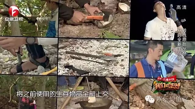 首先,到达野外丛林之后,本以为要开始野外求生了呢,没想到,加了十几分钟的广告,看得人尴尬症都犯了。刚刚到达丛林,导演组收走了明星法则冒险团的生存工具,让他们分成两队穿越过丛林,寻找一种特殊的木头,木头旁边有所需的工具,木头旁边是赞助商品牌商品,硬性植入。