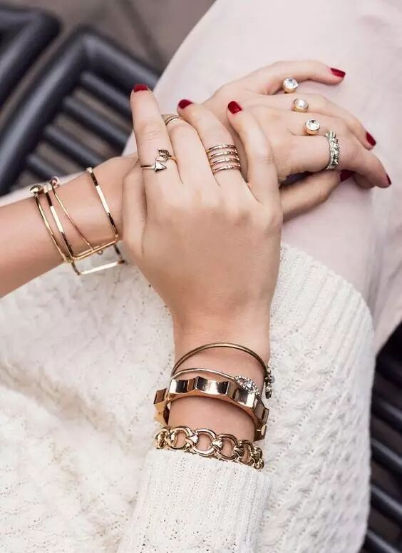 叠戴是这一季的热门潮流,最能为简洁的服装增加细节上的亮点。