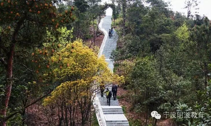 从明道教育出发,上机场高架,一直往北方向开,然后再上保国寺的高架,下高架后前右转,直行过两个红绿灯,就可以看到保国寺的图标,按图标行驶,在与保国寺30米不到的地方,下车,可以看到爬山的路标。