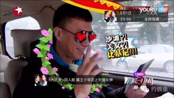 节目组给他们发了个计步器,超过3000步就不能前往海南了。然后还在车上的他看见了一个骑着三轮车的老大爷,霸道的颜王双眼放光,顺势就霸占了老大爷的车,老大爷瞬间升级为白马王子。