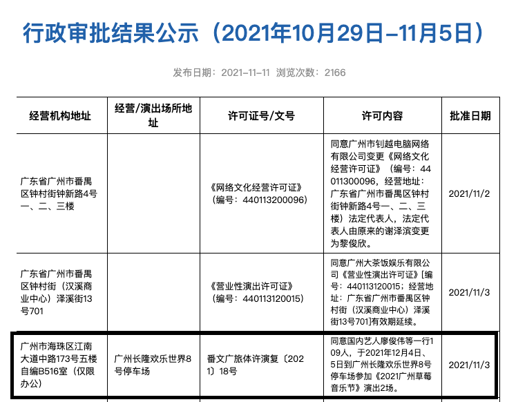 虽然官方仅仅只是官宣了12月在广州会有草莓音乐节,但已经有“眼尖”的粉丝看到了申请报批表!和国潮音乐节一样时间定于12月4-5日!
