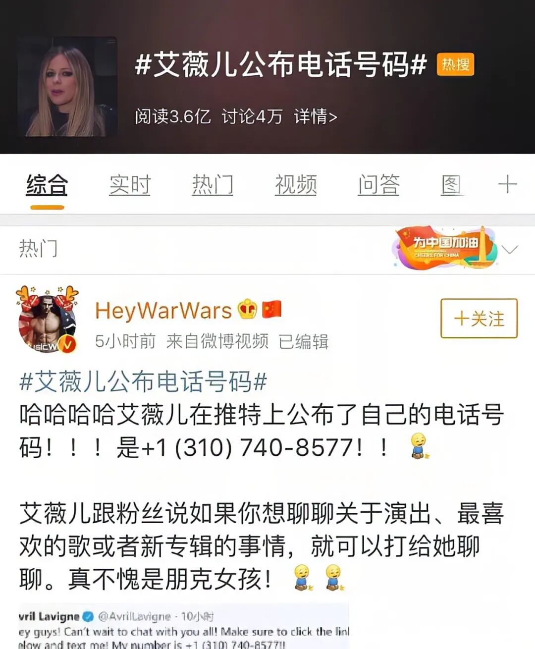 2019年,艾薇儿在推特上公开自己电话号码,这事立刻炸上微博热搜第一。当时,国内超多人都打了人生第一次越洋电话,为的就是想跟心中偶像聊上几句。