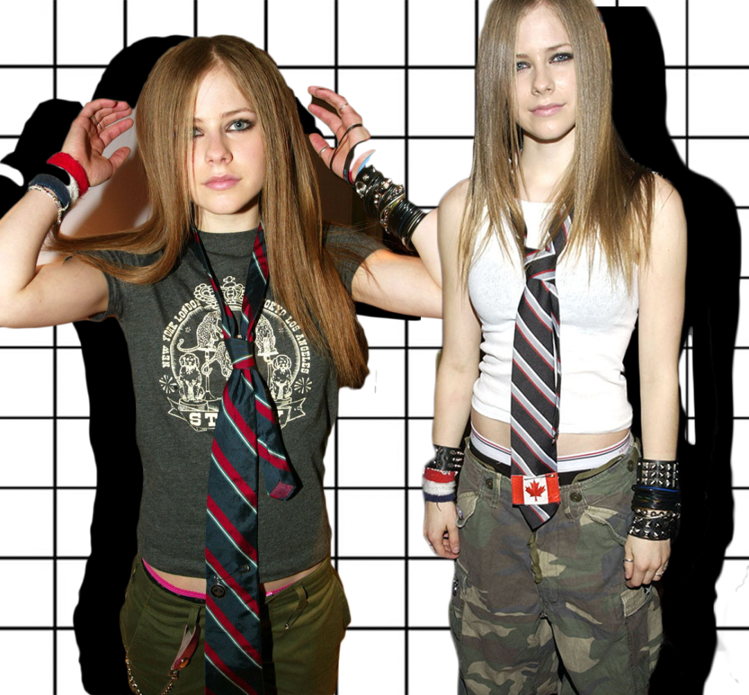 艾薇儿最经典的造型当属她用领带配背心的打扮。据英国版《VOGUE》报道,在20世纪90年代,在艾薇儿的强力带货下,不少年轻人都冲去商店购买格子领带。