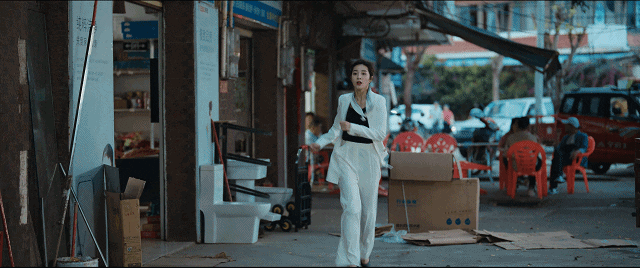 美丽御姐一身白色小西服,气喘吁吁,边跑边喊,却无人上前帮忙。