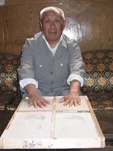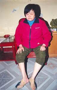我陪着爷爷在家里,来了一个鬼子,满脸胡子,用刺刀对着我爷爷要花姑娘。我爷爷说没有。他用刺刀指着我,爷爷跪下来求他,说我还小,边做手势,说我只有十二岁,鬼子还是不依,要用刺刀刺我爷爷。鬼子把我拖到床上,扒掉了我的裤子,压在我身上,一阵巨痛,我就晕过去了。因为我下身被鬼子撕裂了,以致于留下了终身残疾。