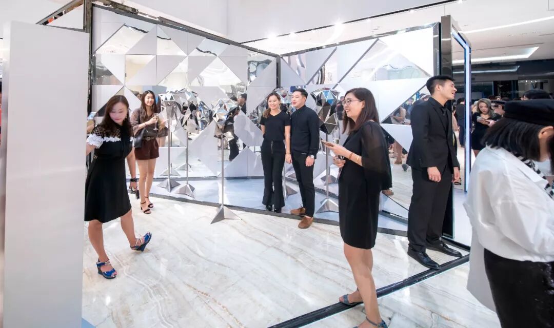 现场不仅有许多时尚艺术展品,连卡佛更是将这一方天地打造成了光怪陆离的镜像王国。