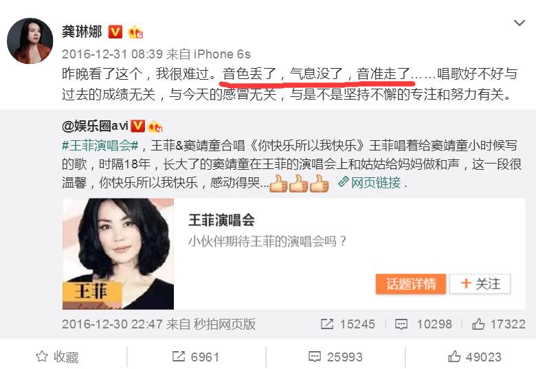 虽然网友宝宝们由于情绪激动,言语上确实出格了一些,不过这回扒黍绝对站群众这边!王菲的演唱会的确有失水准,这是事实,毕竟群众的耳朵经历了无数车祸现场般的演唱会的打磨,已经晋升到声音过滤网的高度了~