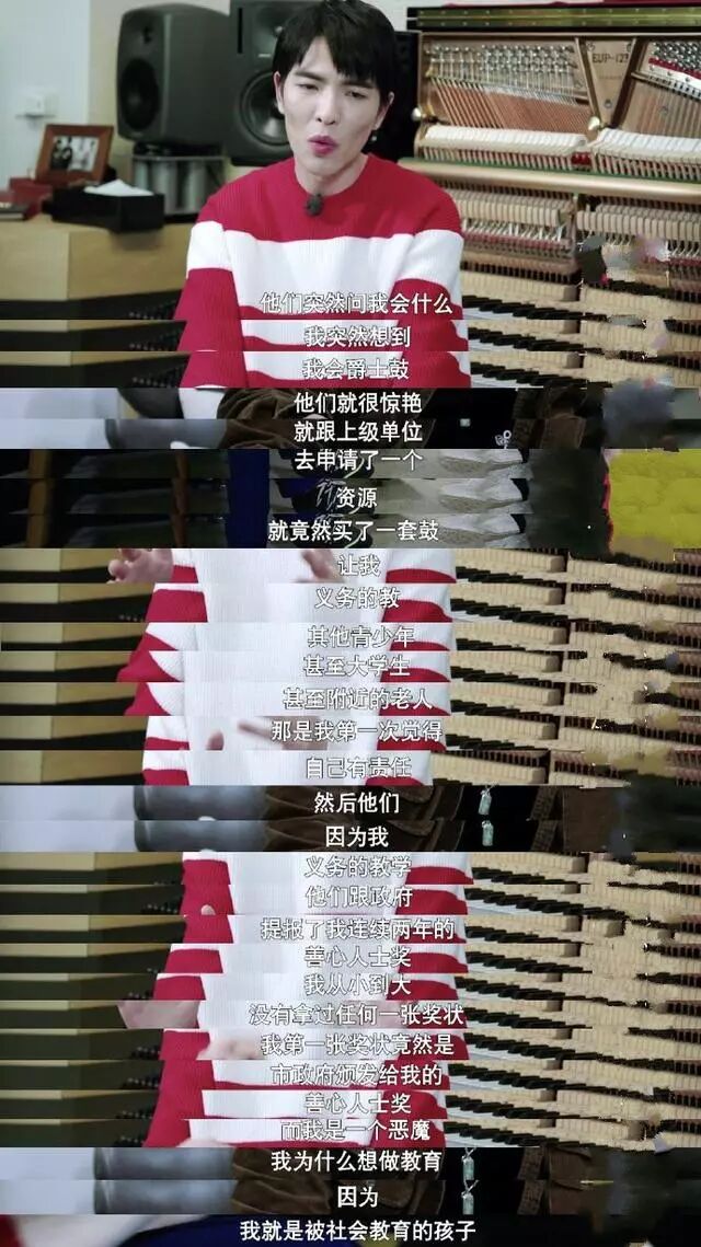 更是自曝黑历史,曾因打架进青少年辅导所两年。萧敬腾说过因为爱上打架子鼓后,就从此被音乐改变,再也不打架了,不过现在的萧敬腾善良有爱心又有才华,靠自己的努力完全变成了不一样的人。