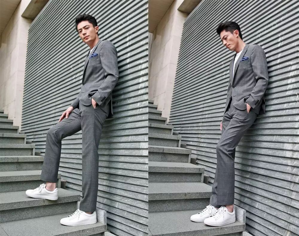 当天霍建华身穿BOSS灰色西装,配上白T白鞋简直帅破天际!
