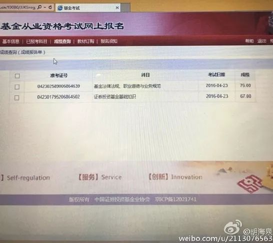 胡海泉所说的基金从业资格证,是2016年他通过的国家基金行业执行资格的考试,当年参加这次考试的全国共有11272人,通过率是49.1%。从来没有“学霸”人设的胡海泉当时还激动地为此发了微博庆祝。