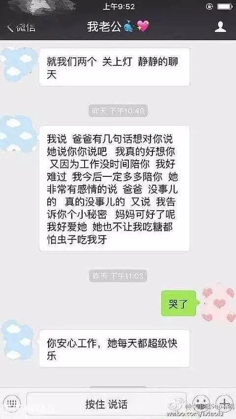 其实夫妻之间的聊天都能看出问题了,一个拼命说,一个敷衍了事,中间隔了宝贝女儿,所以没办法联系在一起。
