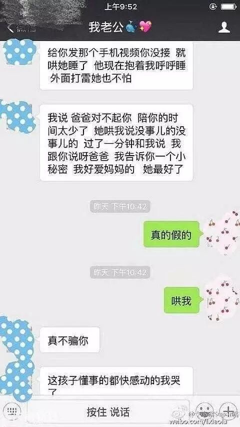 他把自己觉得感动的事共享给老婆看,但是她并不信赖,觉得是编出来的姿态。