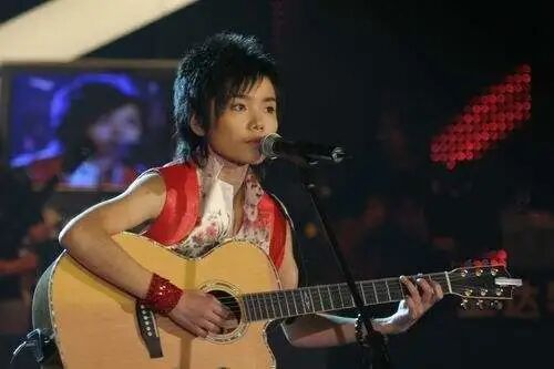 首先是许飞,当年的她抱着吉他席地而坐,一首《爱的箴言》送她顺利晋级,走的是深情民谣路线。