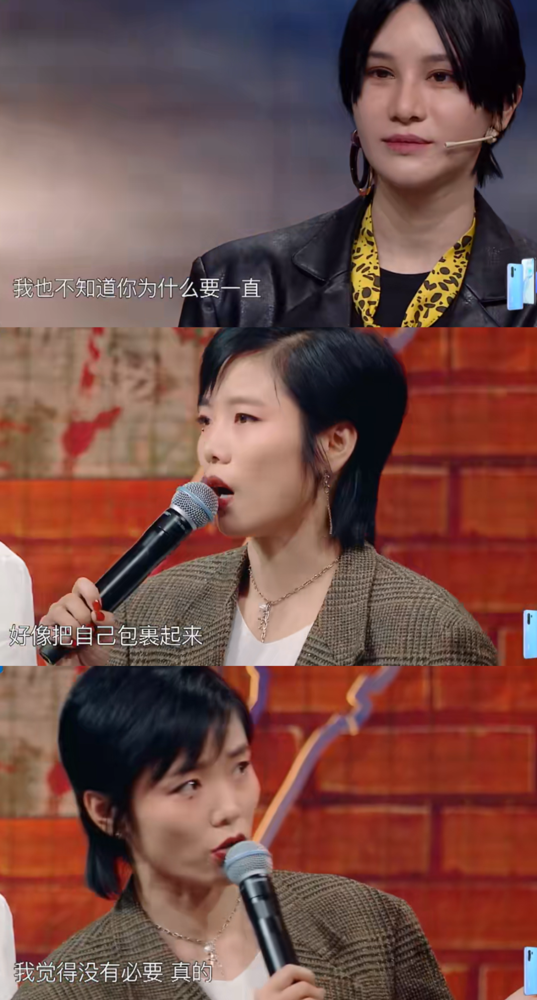这时候,镜头又一次给到许飞,她看着尚雯婕说:“我也不知道你为什么要把自己一直包裹起来,没必要真的。”