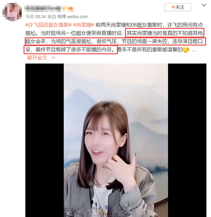 2、尚雯婕说,其他超女聚会没人叫她。但是许飞说,发给尚雯婕的微博私信,没有回复,想叫她也无从叫起。