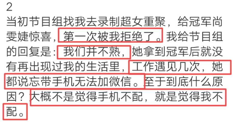 字里行间透露着和尚雯婕的关系,就两个字——不熟。