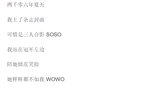 我站在冠军左边,陪她嬉皮笑脸,她样样都不如我 ,WOWO