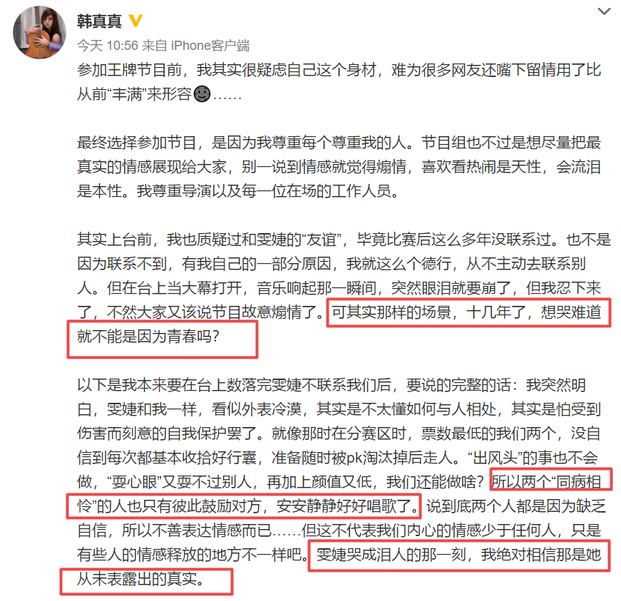 事后韩真真还发微博为尚雯婕说话。