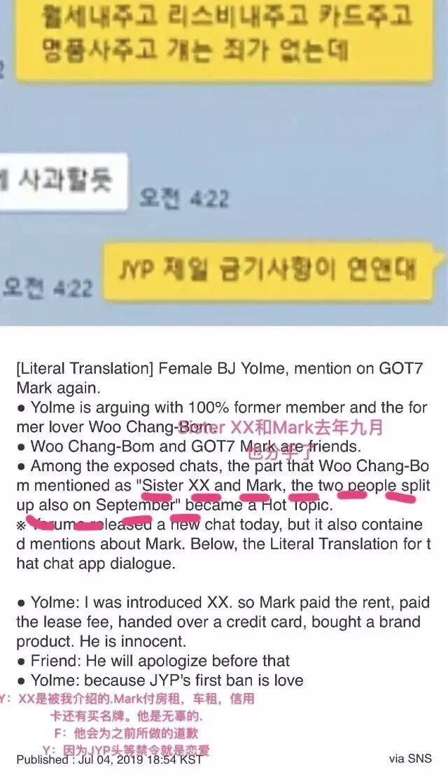 在BJ Yeolmae直播的时候,她也再度爆料:BJ Ahyeong曾与Mark在2017年交往过,还付房租和信用卡。