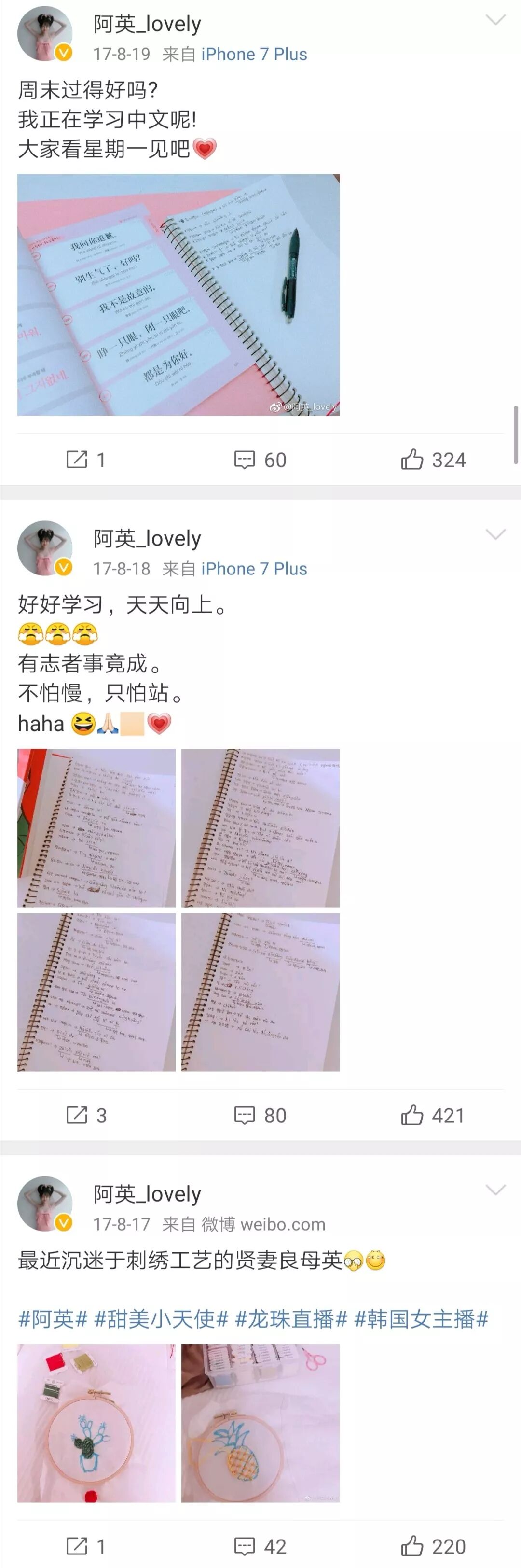 刚好是她在中国直播的时期,她还特别努力的学习中文,也不知道是不是爱情的力量。