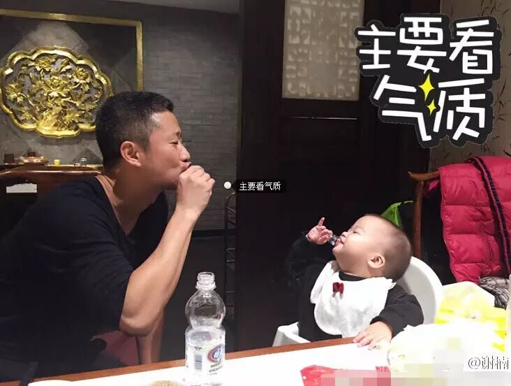 谢楠在微博晒丈夫吴京与儿子“吴所谓”爷俩“拼酒”的照片,还自己设计对白:小吴,我干了,你随意!画面搞笑。网友也表示:楠姐你真是一孕傻三年;这孩子以后酒量估计吓人!吴京你做好醉的准备了么?