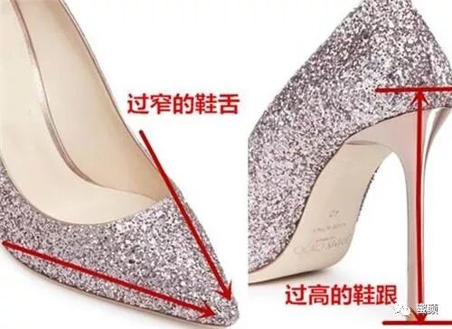其实跟不高都还没有这么的严重,跟越高,意味着脚掌前面承受的力量更大,而高跟鞋前面太窄,就会使劲的挤压在里面。