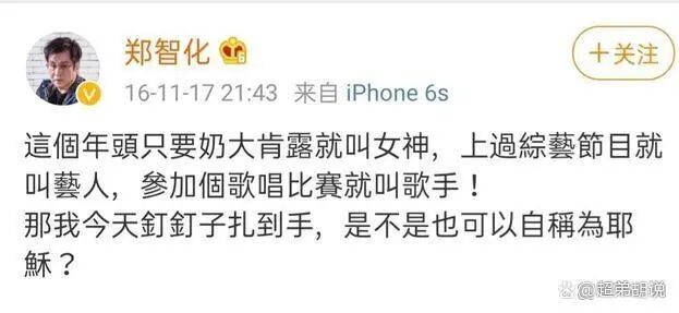 2016年,他的第一条微博就剑指娱乐圈,引起热议。