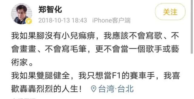 一次采访中,郑智化说,他是残疾,但不是残废。