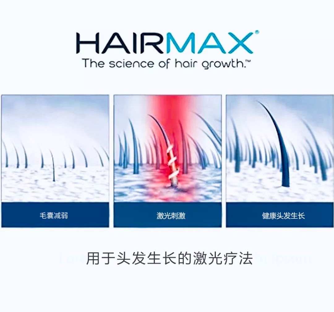 而HairMax的生发原理就是通过LLLT低能量红色激光穿过头皮直接刺激毛囊,使不健康的毛囊重新恢复活力,加速头皮血液循环,促进新生血管形成,调节油脂分泌增强营养或药物吸收(药物指生发液或配合治疗的其他生发产品)。