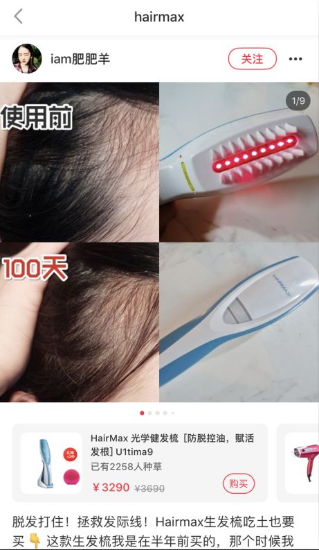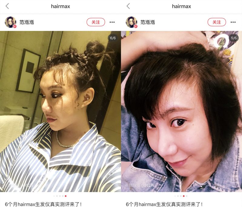 范湉湉也在自己的小红书上推荐过,因为录节目压力大,脱发严重,用完HairMax也得到了改善: