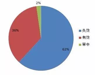 与婚礼相关的专利中,外观设计和实用新型总共占比达到90以上,外观设计和实用新型的稳定性并不高,从图3可以看出,专利失效率达到62%。