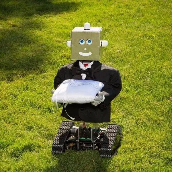 随着机器人技术的成熟,好多人也将机器人搬入了婚礼现场,为各位新人以及参加婚礼的来宾们服务。