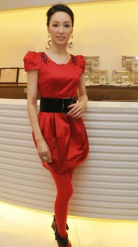 红色是浪漫,红色是烈焰,红色是热情,对于很多女性来讲这种颜色在穿搭的时候呈现出来的是夺目视觉效果,然而红色却不是那么好驾驭的,特别是一身大面积的红色穿搭色调,穿在普通人身上惹眼而显俗气。红色连衣裙配"红丝袜"一向被人看成是奇葩的组合单品,但郭可盈却轻松hold住,不俗反而很高级。