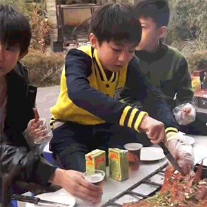 事实上王俊凯喝的是饮料,但饮料有点娘。怎么办,干脆装在白酒杯子里喝,大哥讲究人。